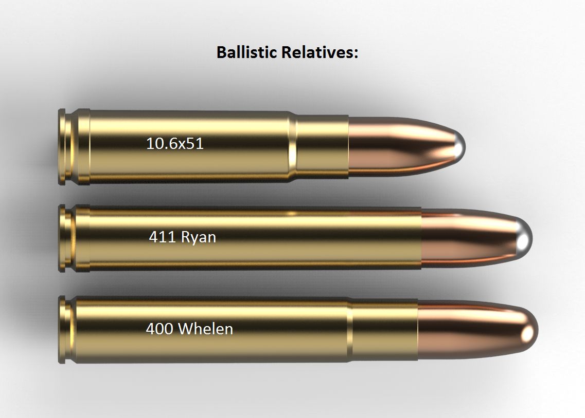 Right case: 67,5mm/2.66in long, head stamp ‘411 RYAN’